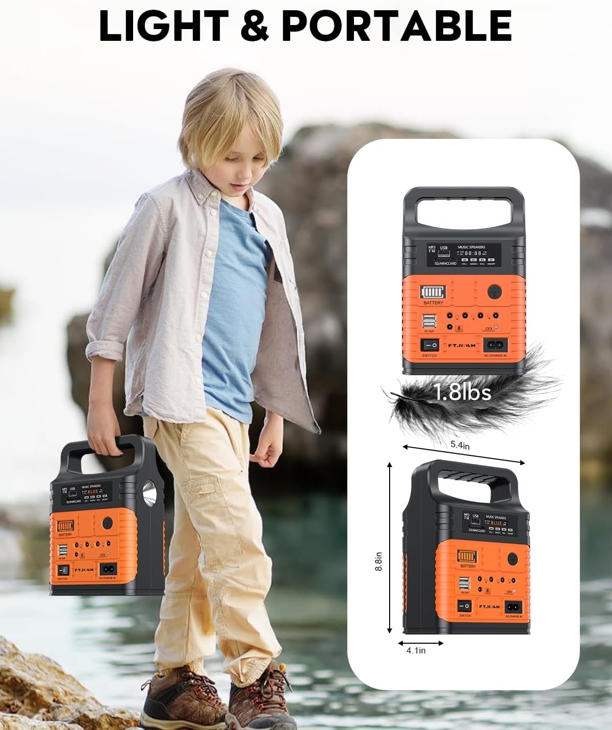 ✨【Lighting, Music, and Entertainment On-the-Go】Equipped with three LED bulbs, a built-in flashlight, and multiple lighting modes (power-saving, ultra-bright, and SOS), this solar power generator enhances your outdoor experience. It provides up to 50 hours of use in power-saving mode and up to 35 hours in SOS mode. In addition, this camping power bank supports Bluetooth, FM radio, and SD card functions, turning your outdoor activities into a live concert or keeping you entertained in case of an emergency.
