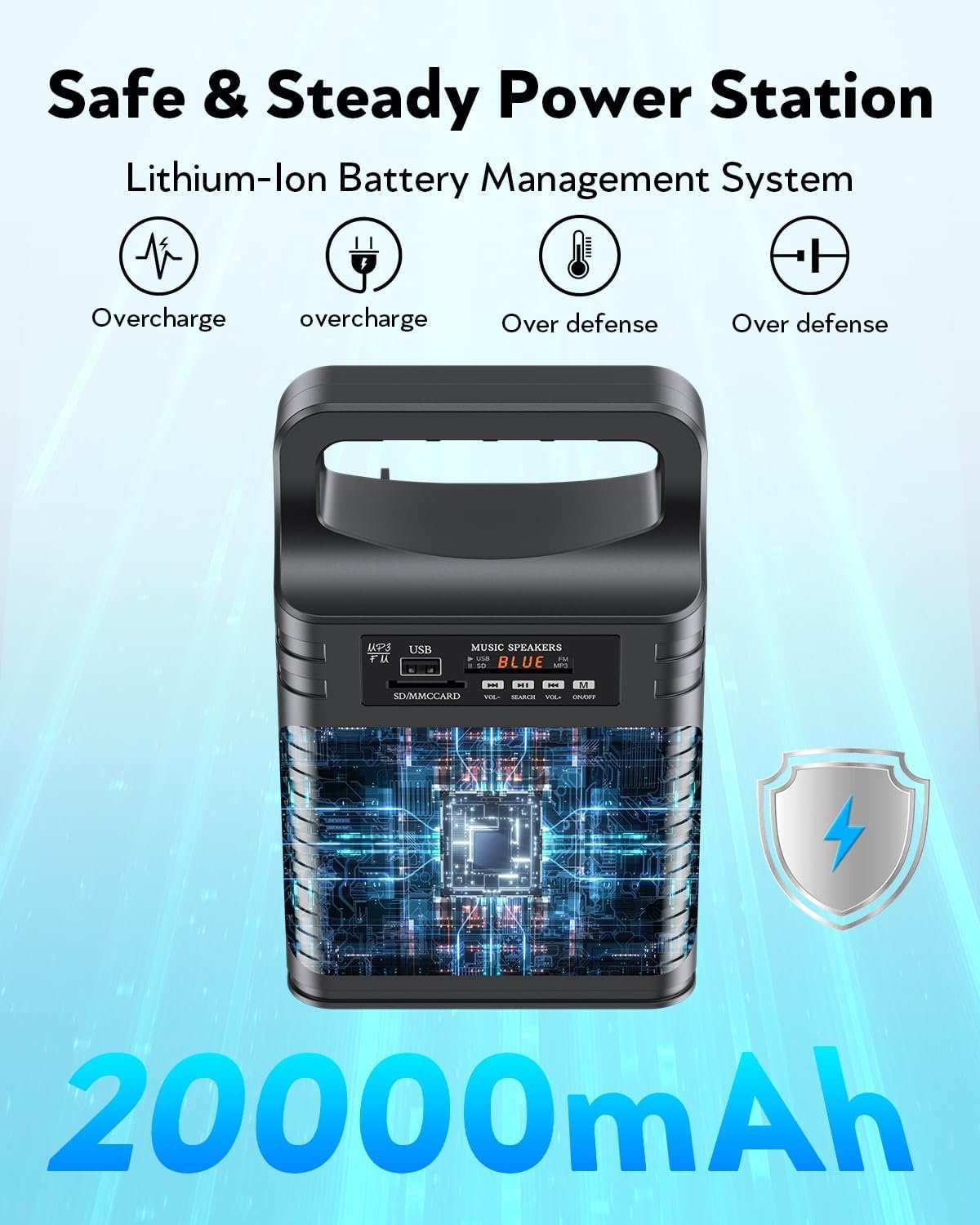 20000mAh Portable Power Station, Power Station with Solar Panel, Bluetooth, FM Radio, LED Flashlight, Expansion SD Card, Camping Power Bank for Home, Road Trips, Fishing