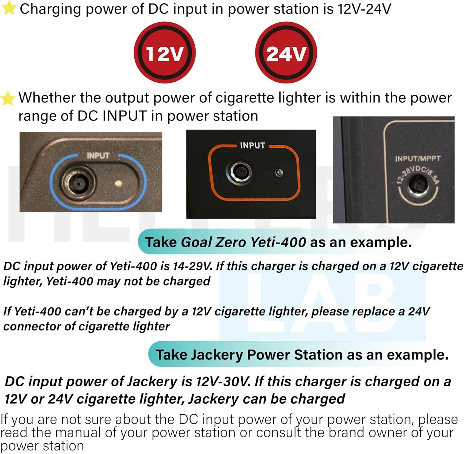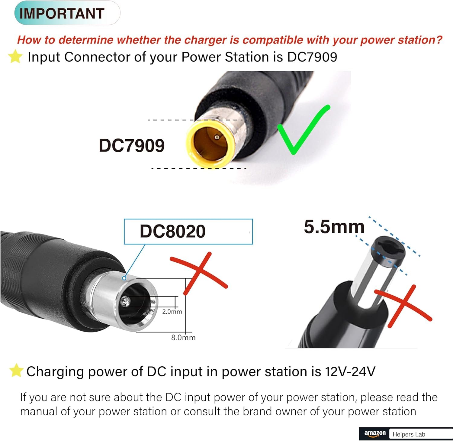 【Note】DC7909 cigarette lighter power cable only work with power adapter with DC 8mm or 7.9×5.5mm connection, not other sizes. Please chenk your device about this before purchase!