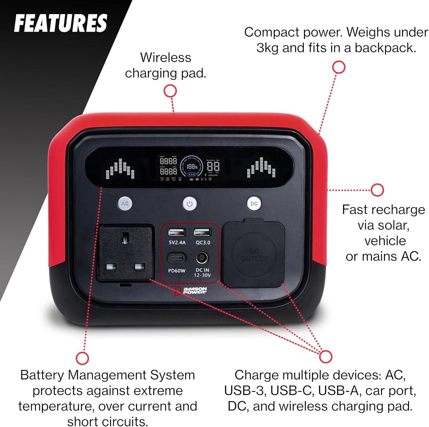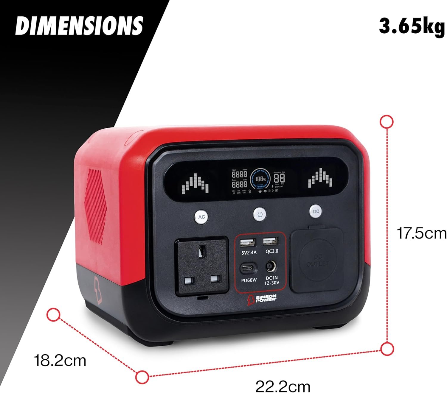 Bimson Power 700W Portable Power Station, 512Wh LiFePO4 Battery, 600W AC Fast Charge 1Hr, Solar Generator with 2 AC Outlets, USB-C PD 100W, Wireless Charging, EPS Backup – Camping, Home, Outdoor Use