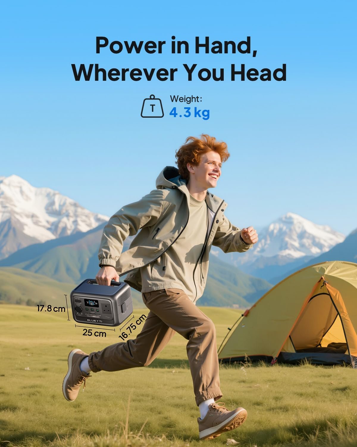 [Light and Portable] – With a 600W AC inverter, 288Wh LiFePO4 battery, and 8 outlets, it weighs only 4.5kg. Which makes an excellent companion for outdoor camping, road trips, or home emergencies.