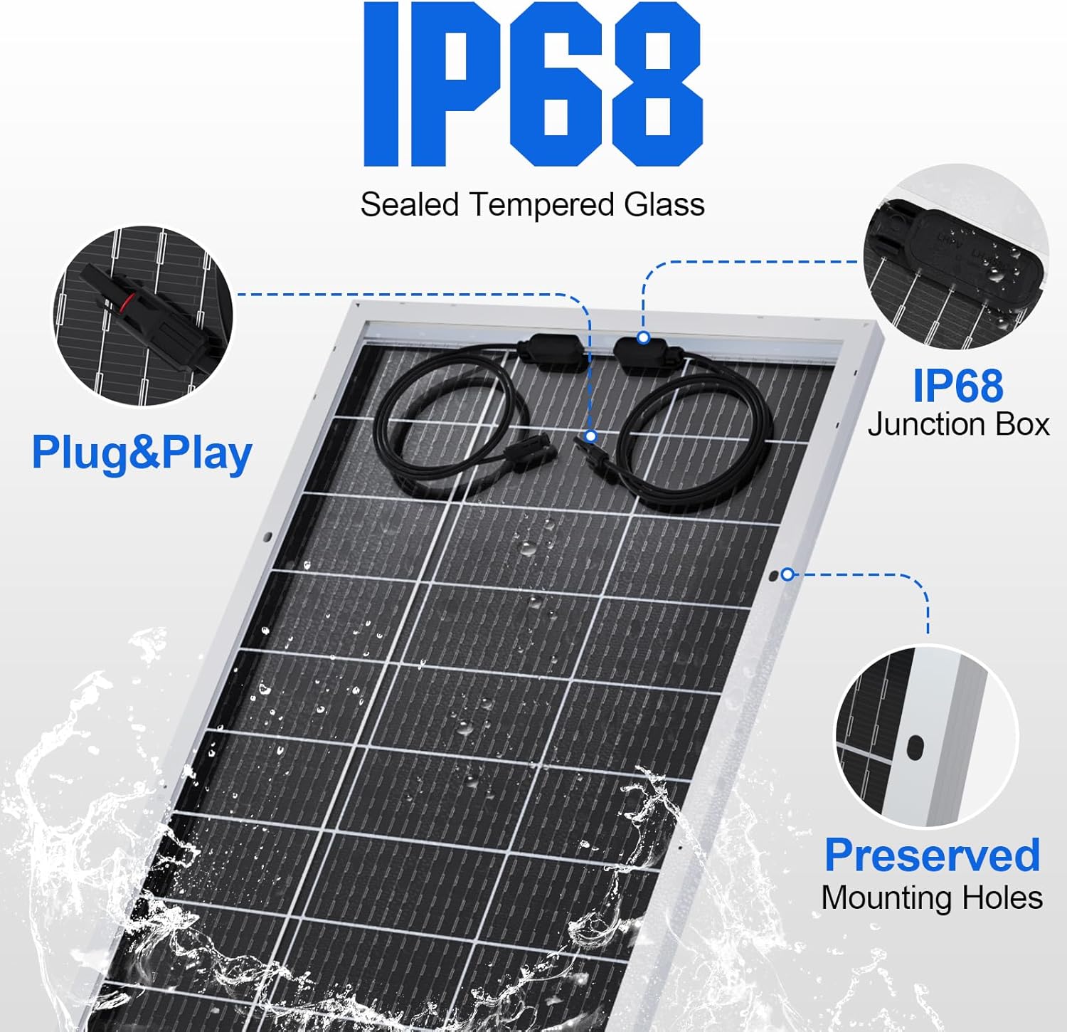 [Parcel Content]: This kit includes 1pc 195W monocrystalline solar panels, a 30A solar controller, 1 pair of 5m (16.4″) 4mm² solar cables, a cable entry, and 4pcs corner brackets