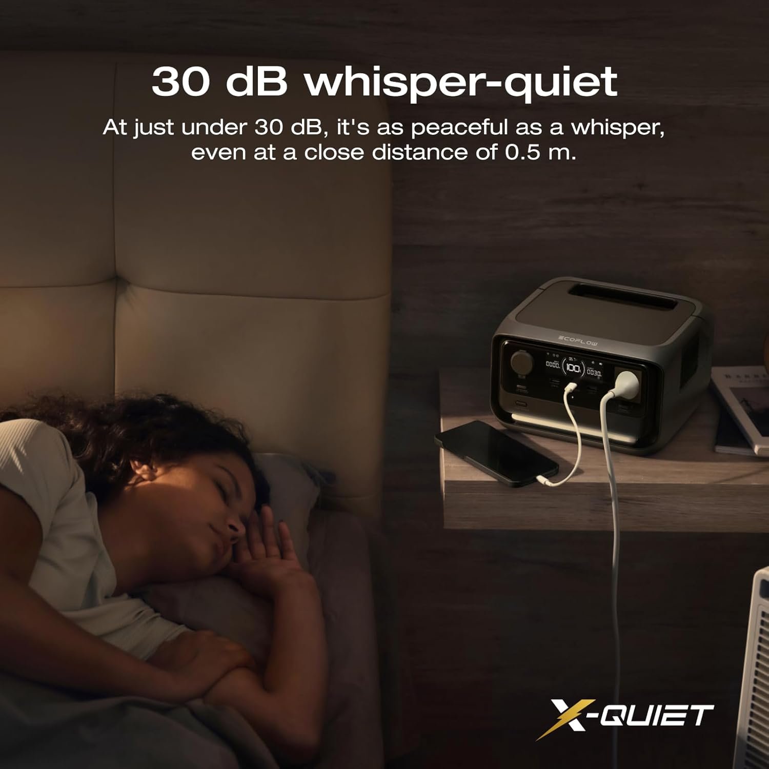 Extra 16 hr Runtime & Ultra-Quiet: X-GaNPower boosts efficiency, delivering 16 hr runtime for <100W devices like lights and routers. Compact and ultra-quiet at 30 dB, it runs silently even at 0.5 m away.