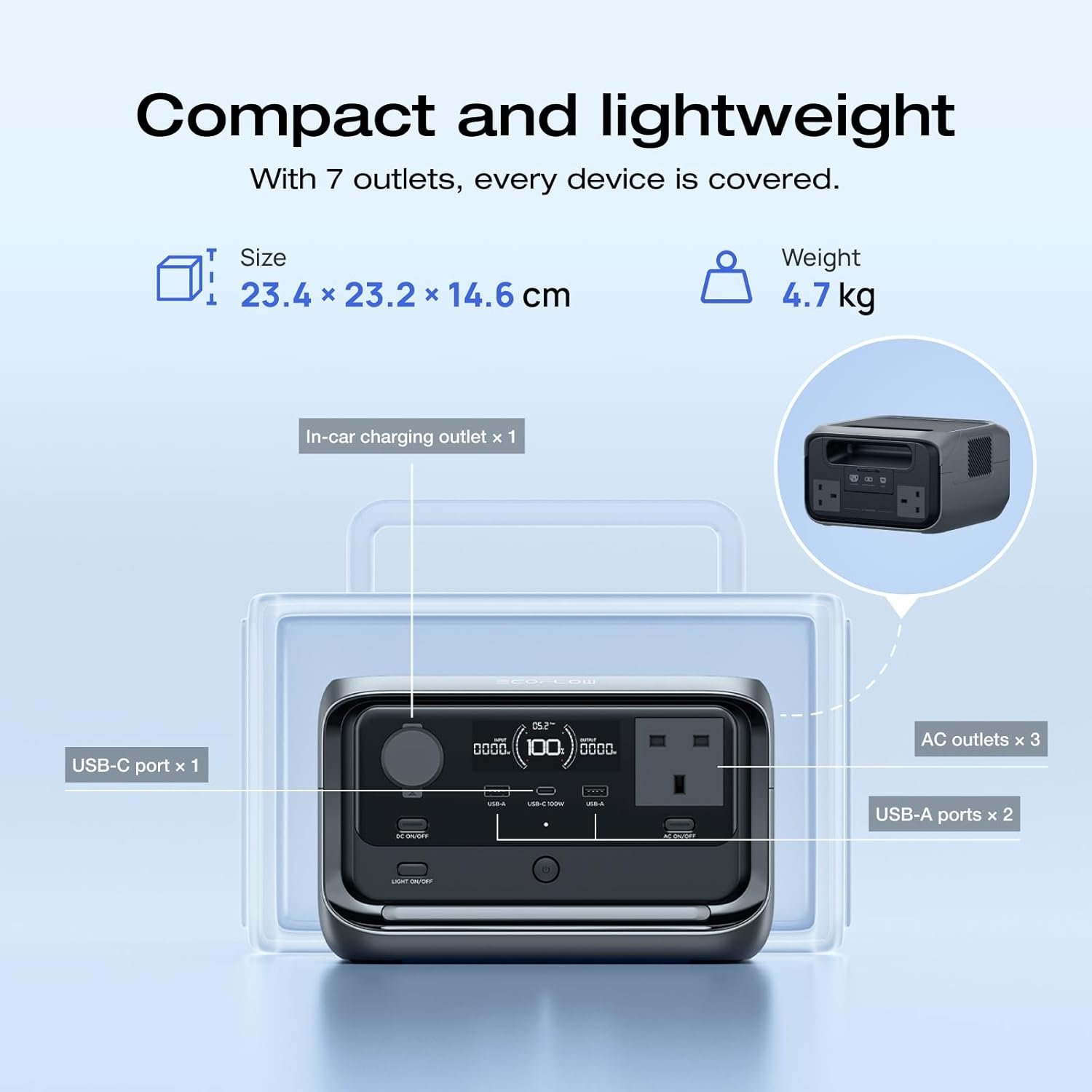 Durable & Portable: The LiFePO4 battery lasts 3000 cycles (10 years of everyday use before its capacity drops to 80%). Compact (23.4 × 23.2 × 14.6 cm) and lightweight (4.7 kg), it’s easy to carry indoors or outdoors.