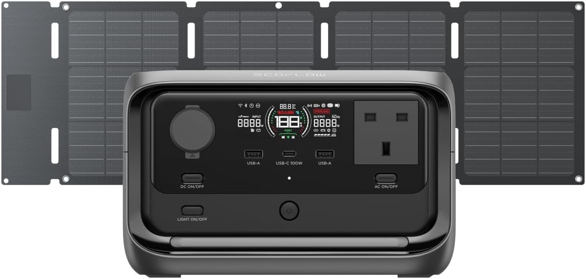 EcoFlow RIVER 3 Plus Portable Power Station with 45W Solar Panel, 286Wh LFP Battery, 1200W Output, 16 Hours Runtime for Appliances