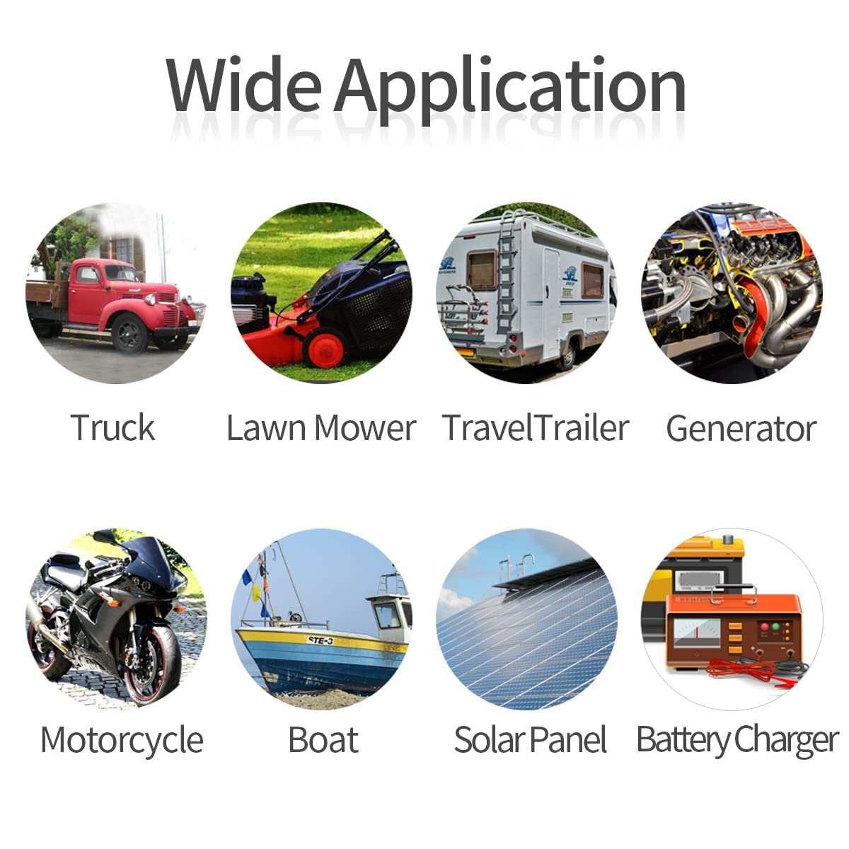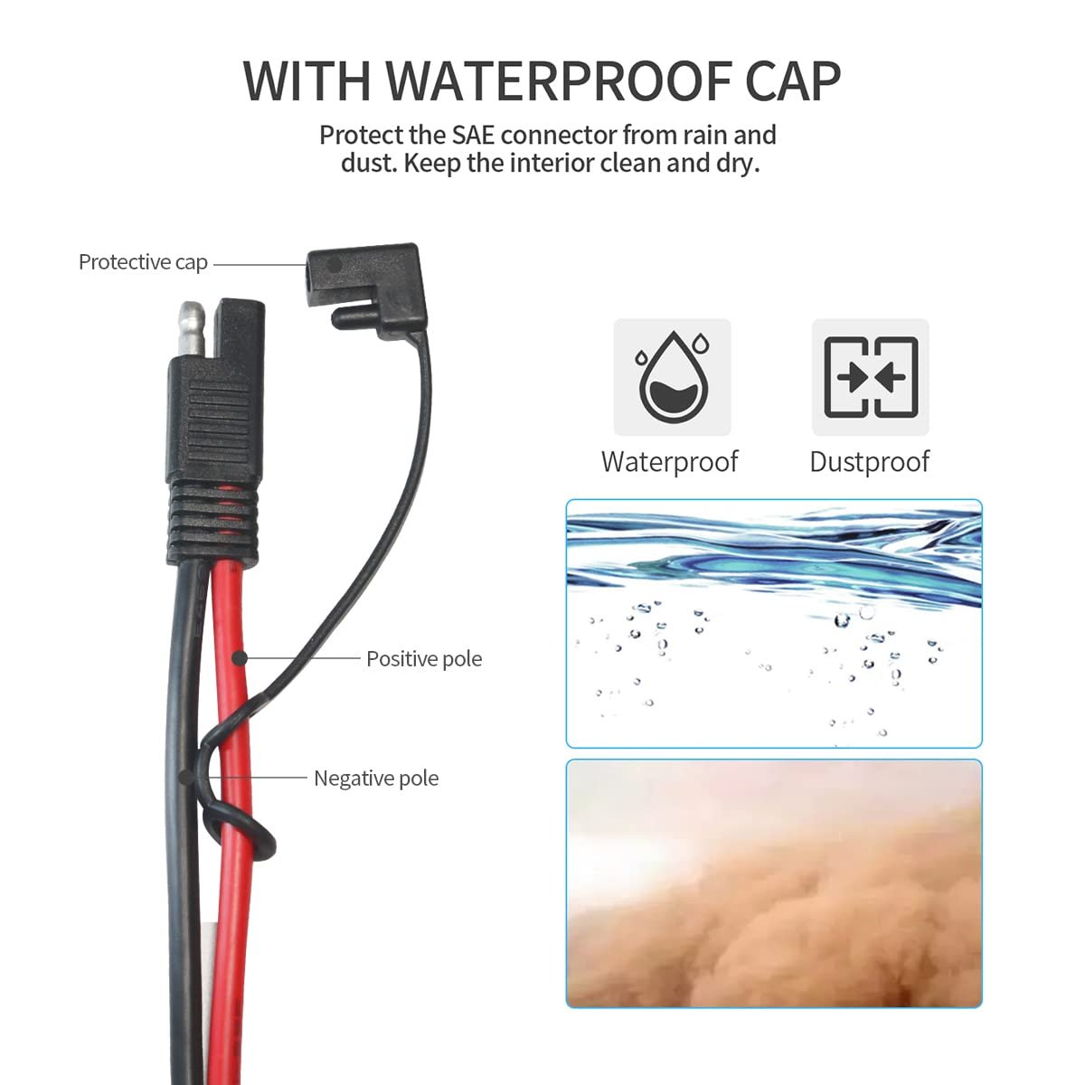 [SAE Quick-Disconnect to Ring Terminal] Standard SAE two-pin plug effortlessly connects to solar generators, battery chargers, or SAE-equipped panels; ring terminals offer a secure connection to battery posts.