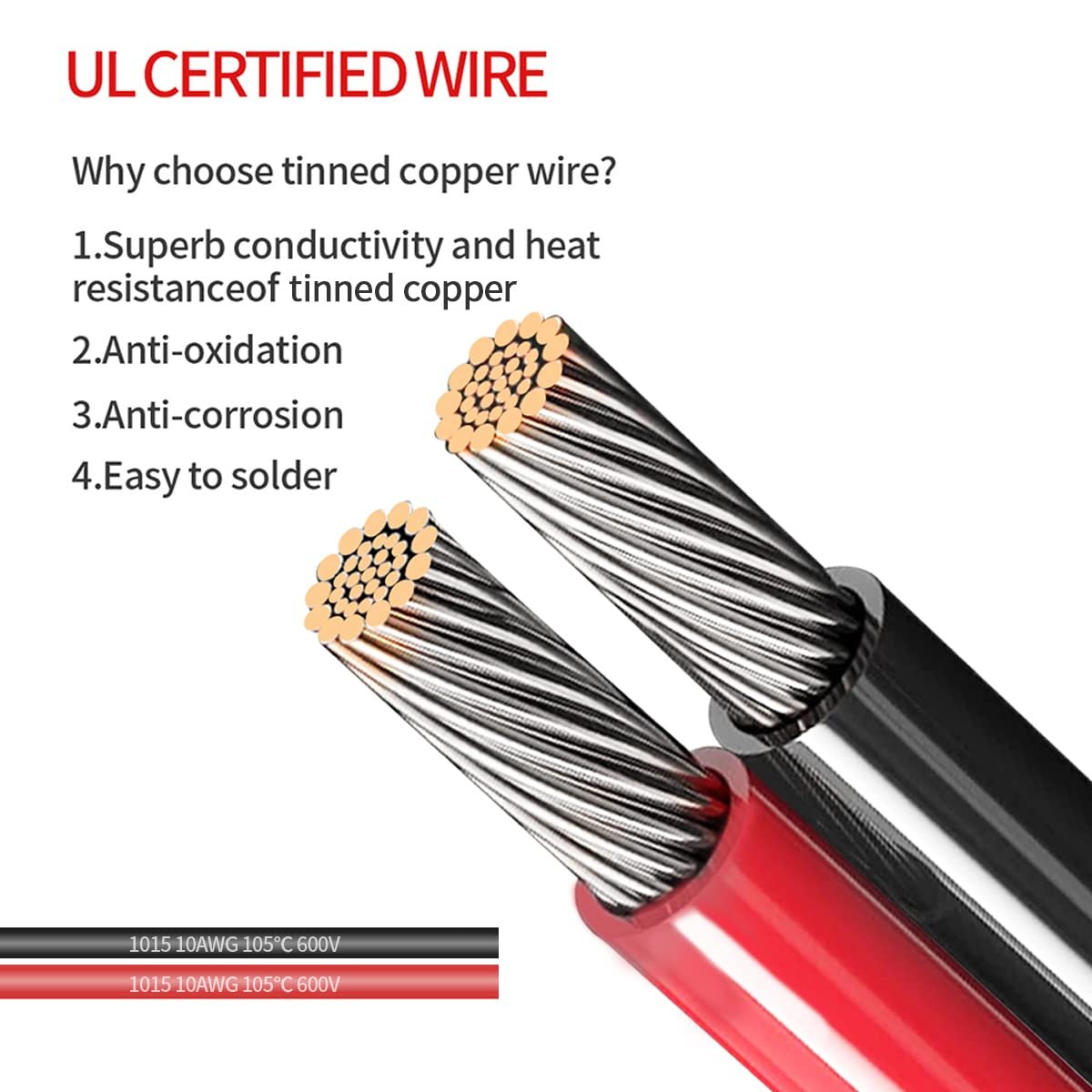 [10AWG SAE to Ring Terminal Extension Cable] Thick, flexible 10AWG tinned copper conductor wrapped in a dual-rated PVC jacket (-30?°C to +105?°C) ensures minimal voltage drop, high current capacity, and resilience to temperatures and moisture