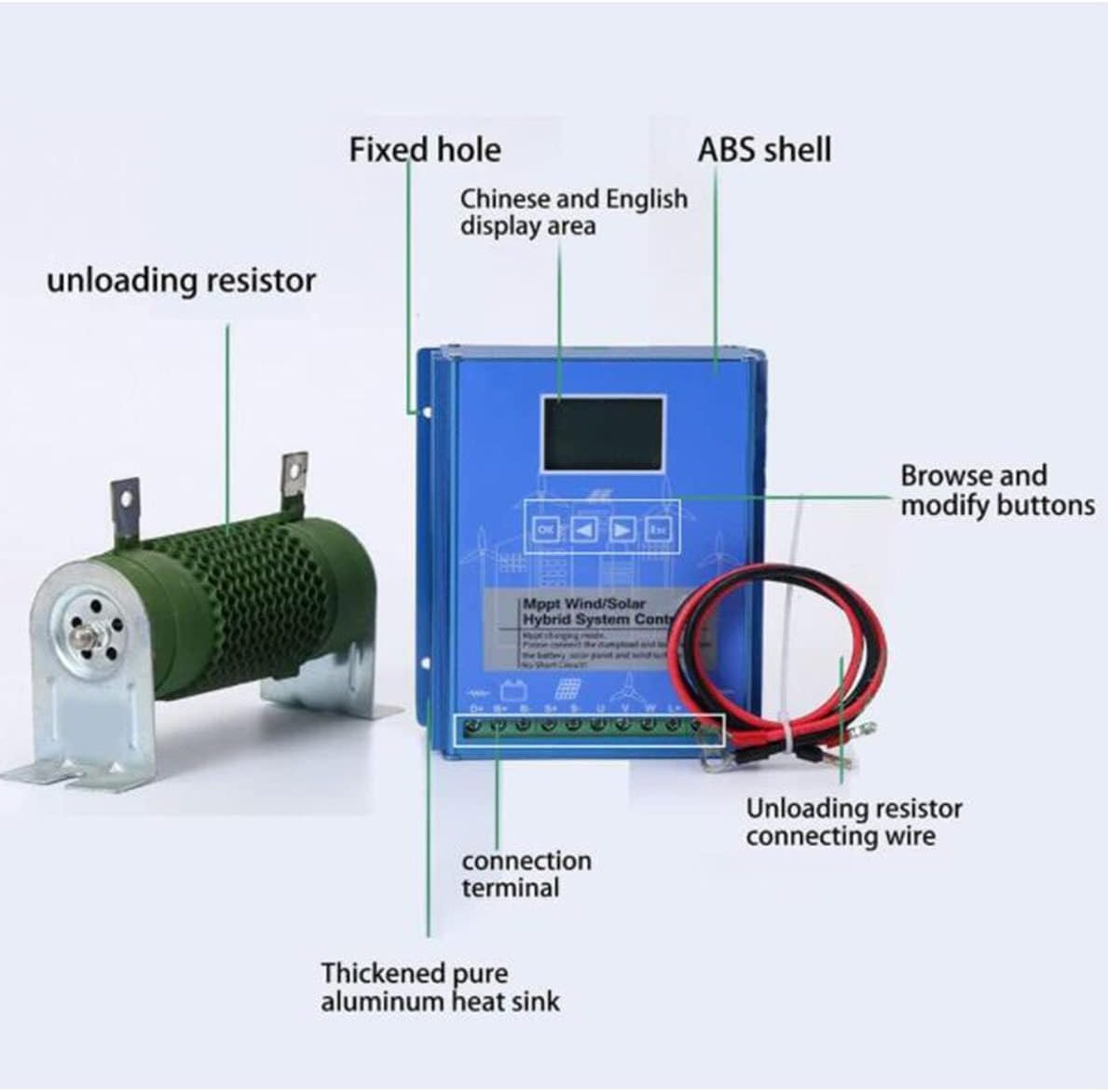 ❤【Using boost MPPT】The multi-control mode wind turbine charging adopts boost MPPT technology, which can be charged efficiently even at low wind speeds. It is equipped with an external discharge resistor, and the solar panel charging uses MOS tube series PWM technology.