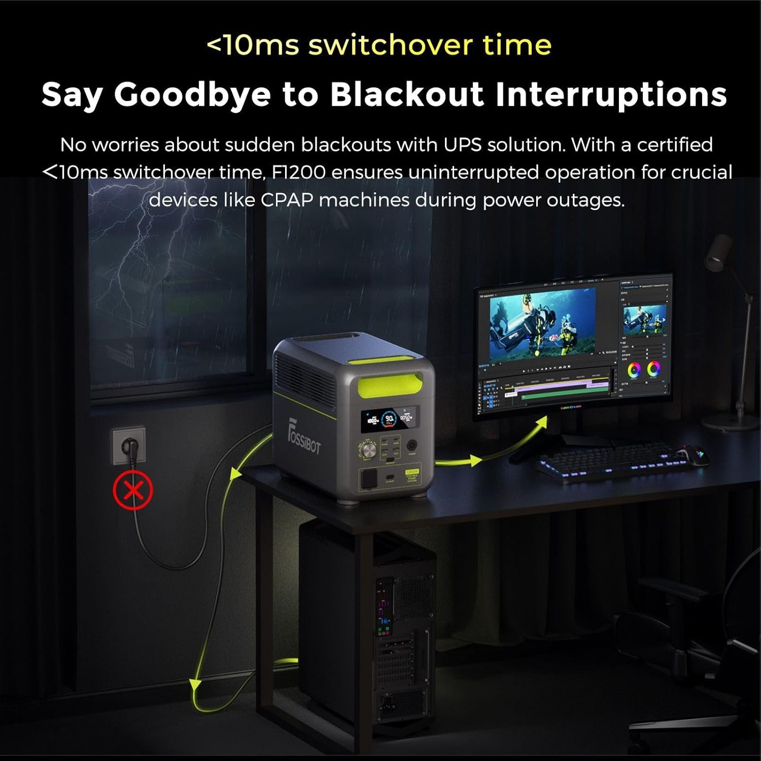 FOSSiBOT Tragbare Power Station F1200 With 200W solar panel, 1024Wh LiFePO4 Solar Generator,Outputs 1200W (2400W Peak), Applicable to RV/Camping/Home