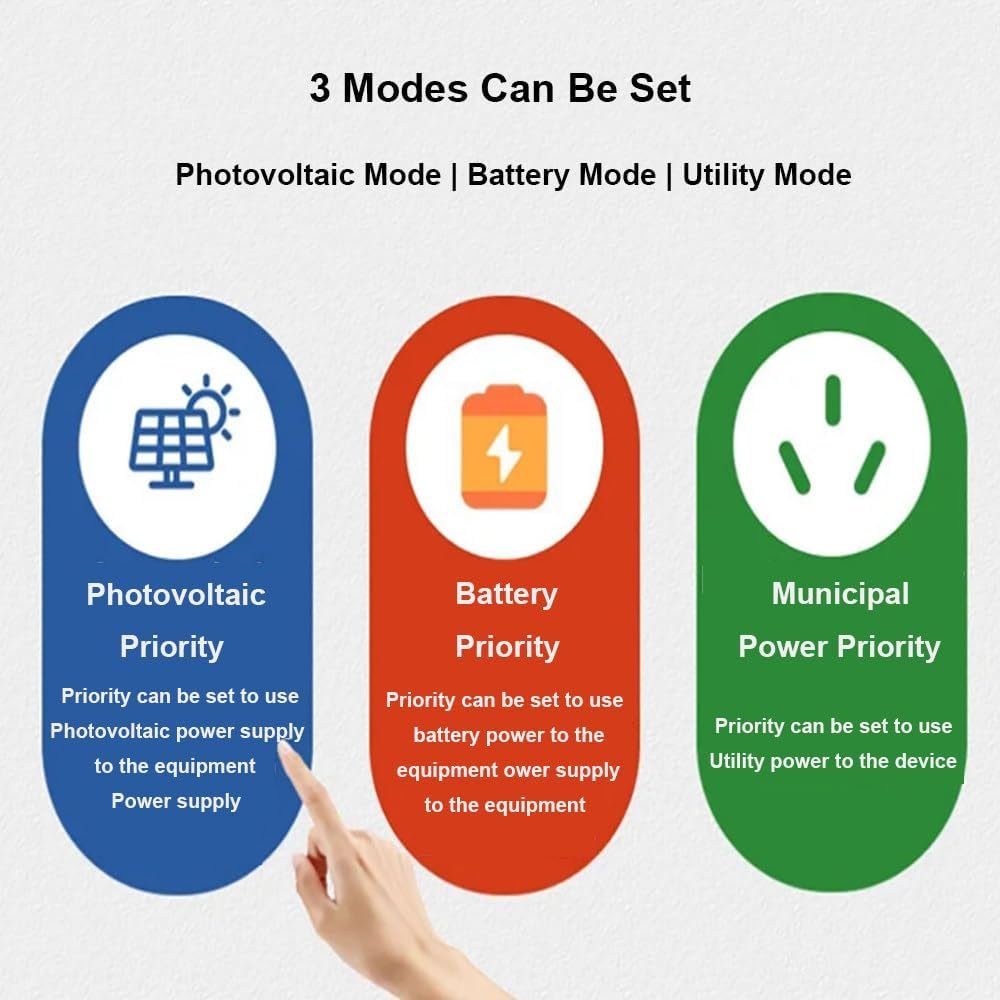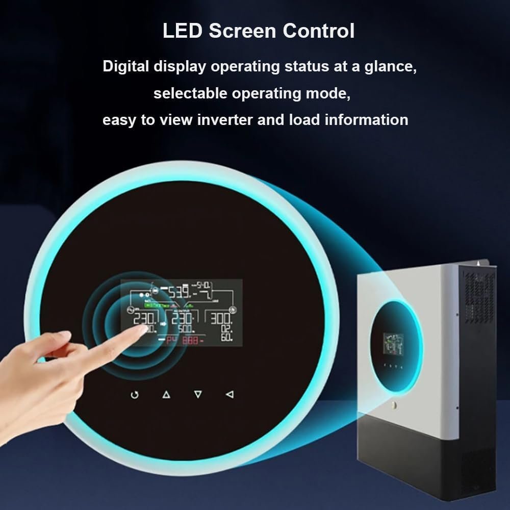 【Multiple Charging Modes】Support three charging methods: solar energy, mains electricity, diesel/gasoline generator charging to meet different application needs. Suitable for lead-acid batteries/lithium batteries/AGM batteries. Wall-mounted, can be hung on the wall.