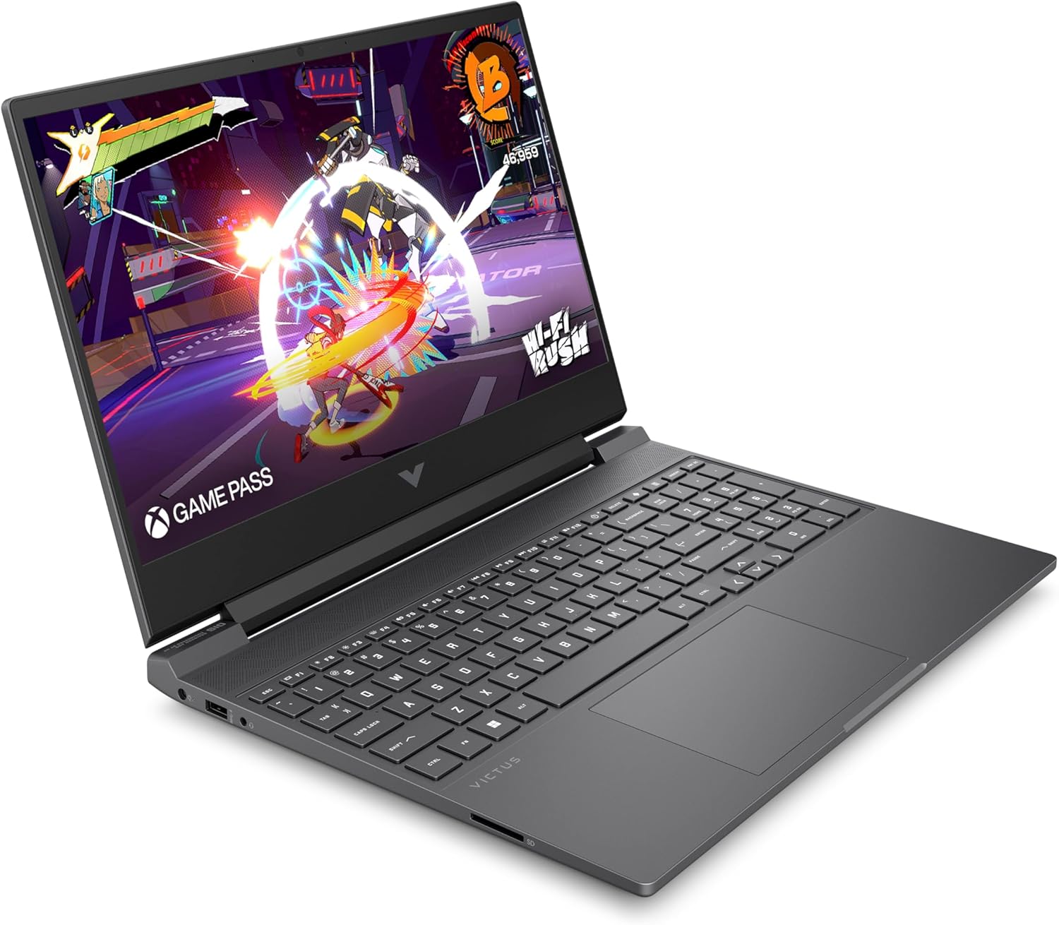HP Victus 15.6″ Gaming Laptop, AMD Ryzen 5-8645HS, 8 GB RAM, 512 GB SSD, NVIDIA GeForce RTX 2050 Graphics, FHD IPS Display, Up to 6 hrs 15 battery, Win 11, Mica Silver, 15-fb2002sa