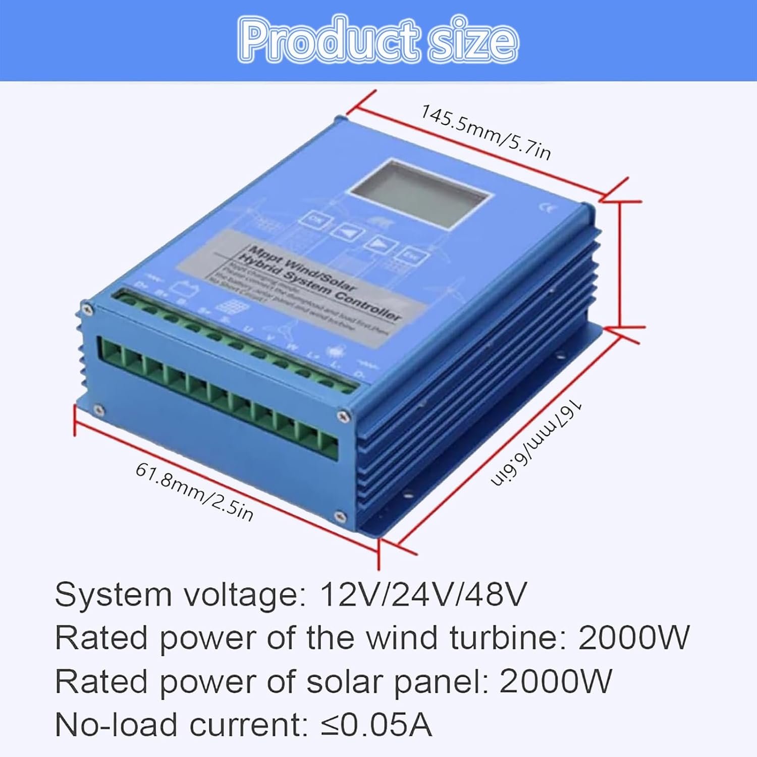 ➤【MULTIPLE PROTECTIONS】This wind solar hybrid systems controller has solar reverse protection, overload, undervoltage and overload protection, battery reverse protection and open circuit protection, overload protection