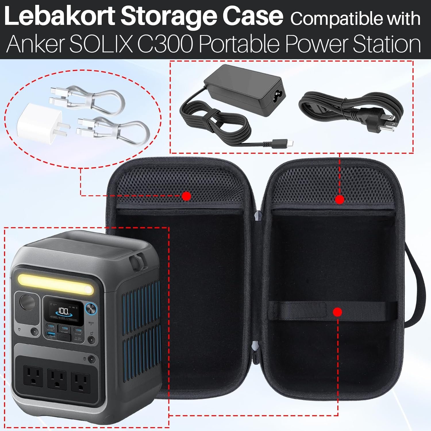 Compatibility: Lebakort protective case compatible with Anker SOLIX C300 portable power station outdoor 288Wh LiFePO4 battery 300W (600W surge) solar generator. Keep your Anker power station SOLIX C300 safe on the go