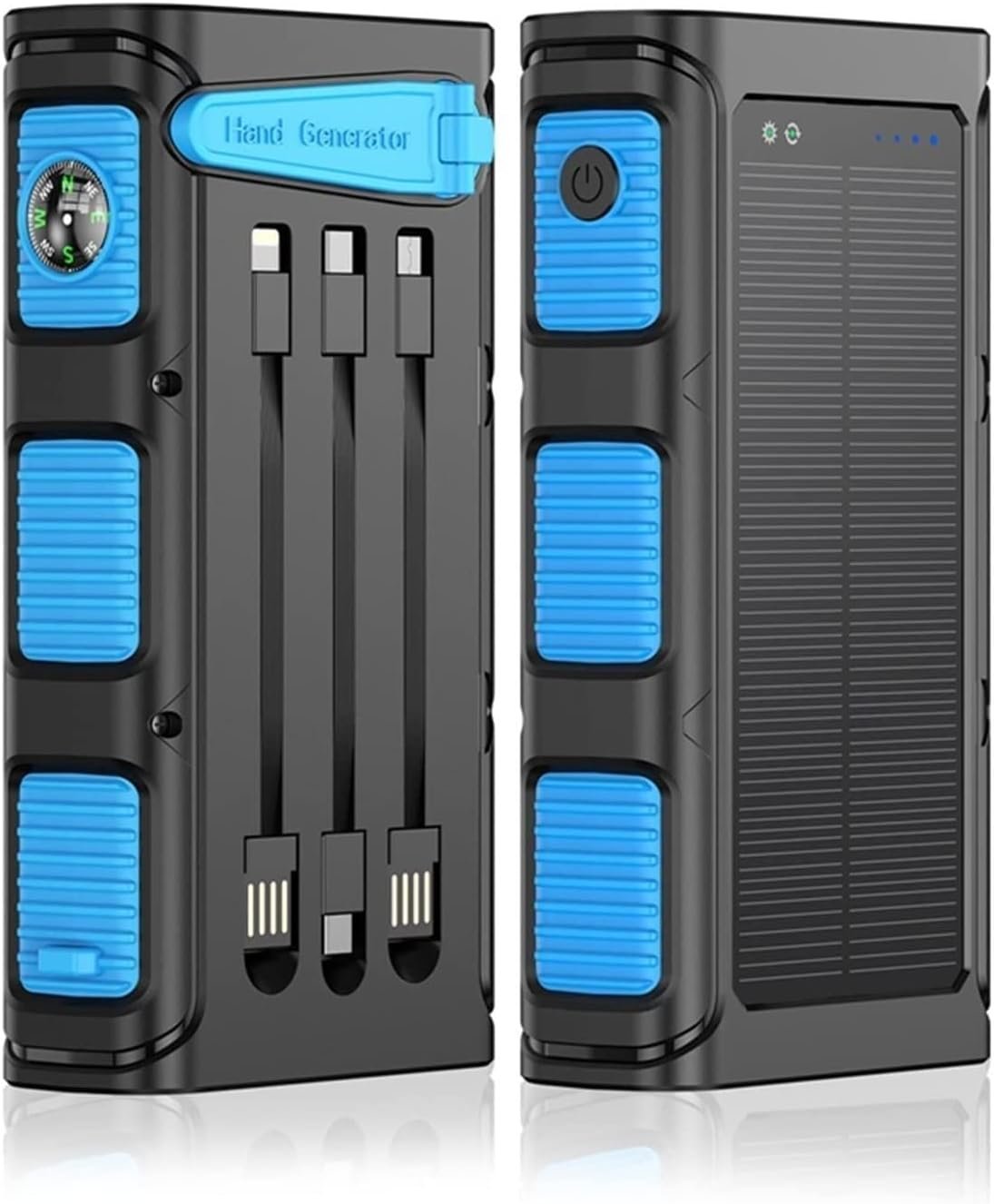 MekUk Generators Hand Crank Solar Power Bank With Cable Camping Light Portable Manual Power Supply (Color : Blue, Size : 10000mAh)