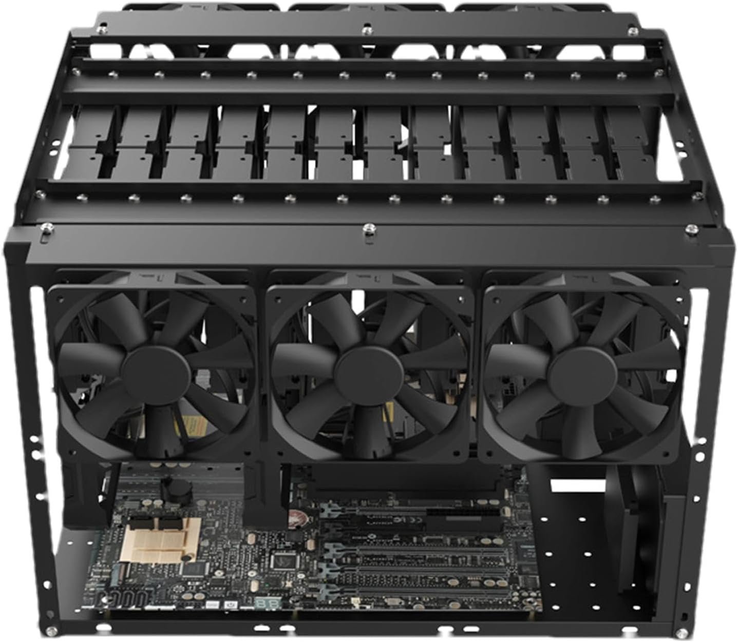 ➧Efficient Operate: Designed with standard ATX motherboard holes, this Mining Rig Frame supports three 12CM fans and graphic cards for optimal cooling, ensuring your equipment operates at efficiency.