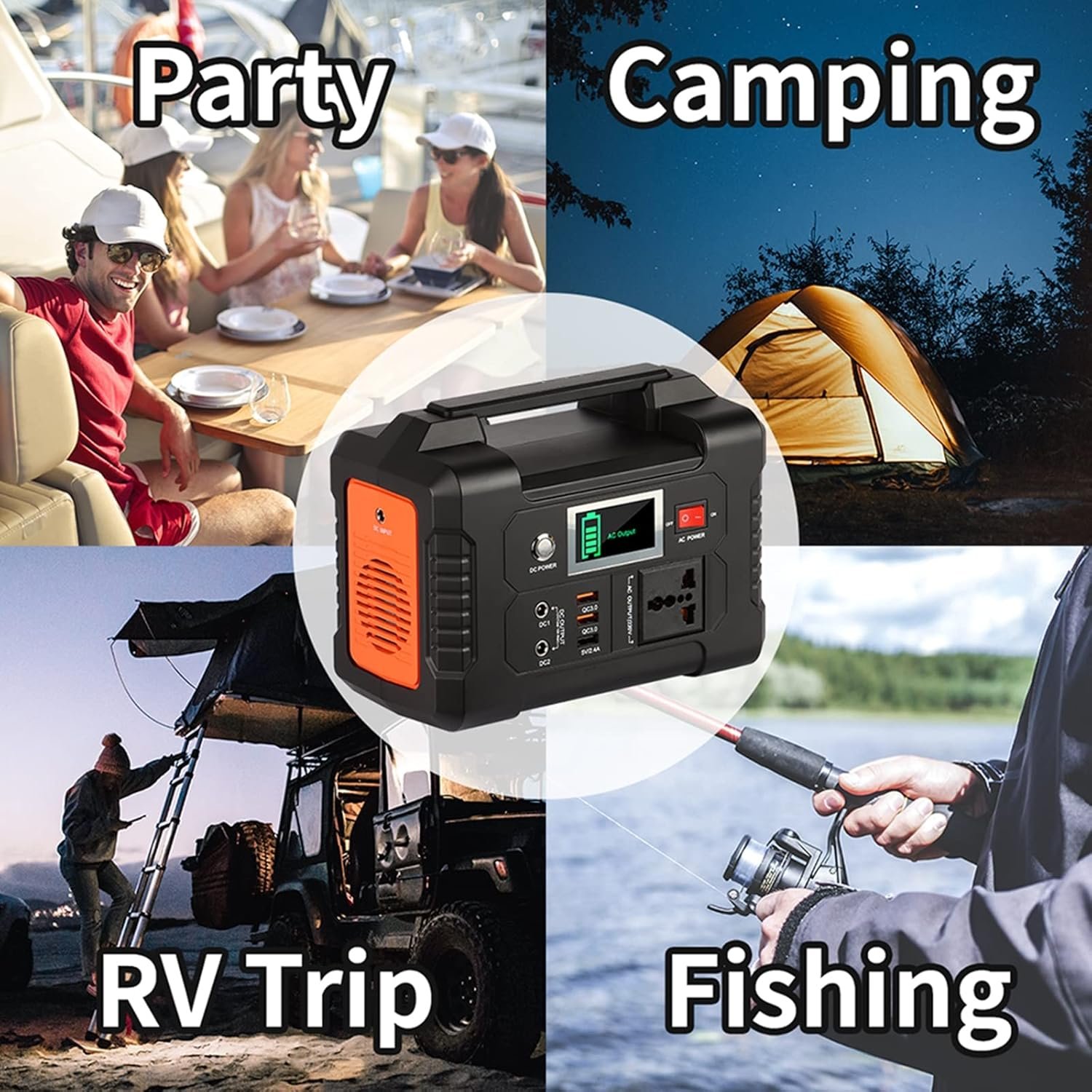 VARIOUS OUTPUTS: 1 * 220 AC output (200W), 2 * DC output, 2 * QC 3.0 quick charge USB port, 1 * USB ports (2.4A auto). Multiple output ports are suitable for your car refrigerator, sports/digital cameras, smartphones, laptops, tablet, drones, projectors, etc.