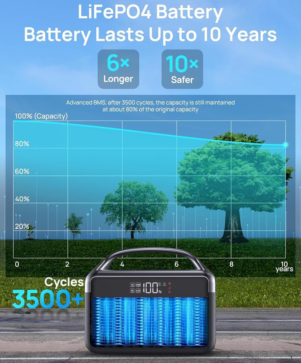 BATTERY CAPACITY: 192Wh (60,000mAh) lithium battery pack provides long-lasting portable power for outdoor activities and emergencies