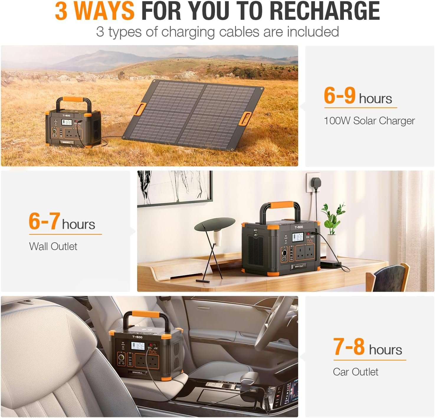 【Easily Rechargeable with 3 Ways】 (1)GRECELL portable camping generator can be recharged with any compatible 100W or 200W solar panel (panel not included), and can be fully charged in 6-9 hours by a 100W solar panel in full sun. (2) The power generator can be fully charged in 7-8 hours by car charger. (3) Can be fully charged in 6-7 hours being plugged into the wall outlet.