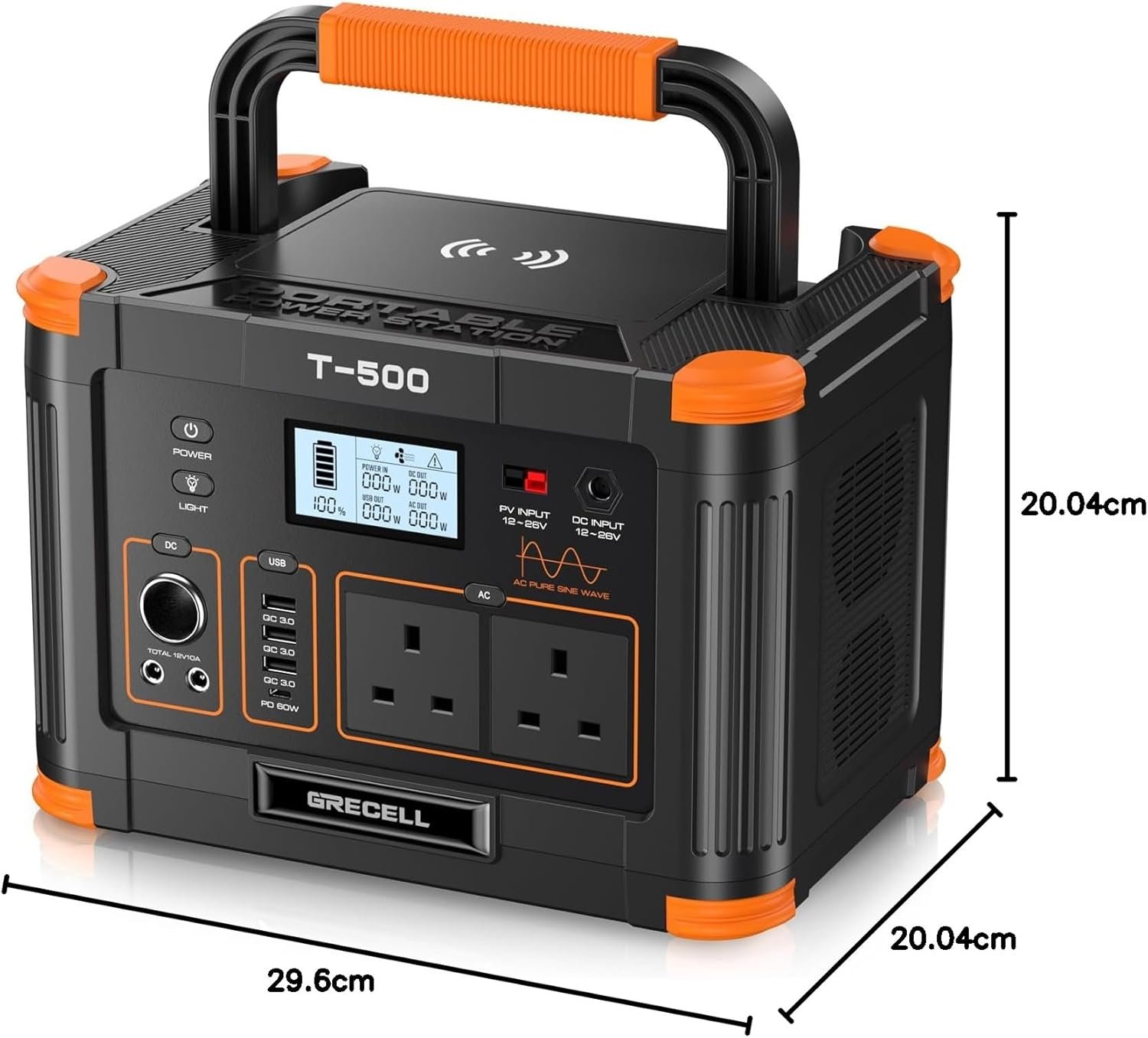 Portable Power Station 500W(Peak 1000W), GRECELL 519Wh Outdoor Solar Generator Backup Battery Pack with 2 230V AC Outlets, 500W 10-Port Powerhouse for RV/Van Camping Road Trip Home Emergency