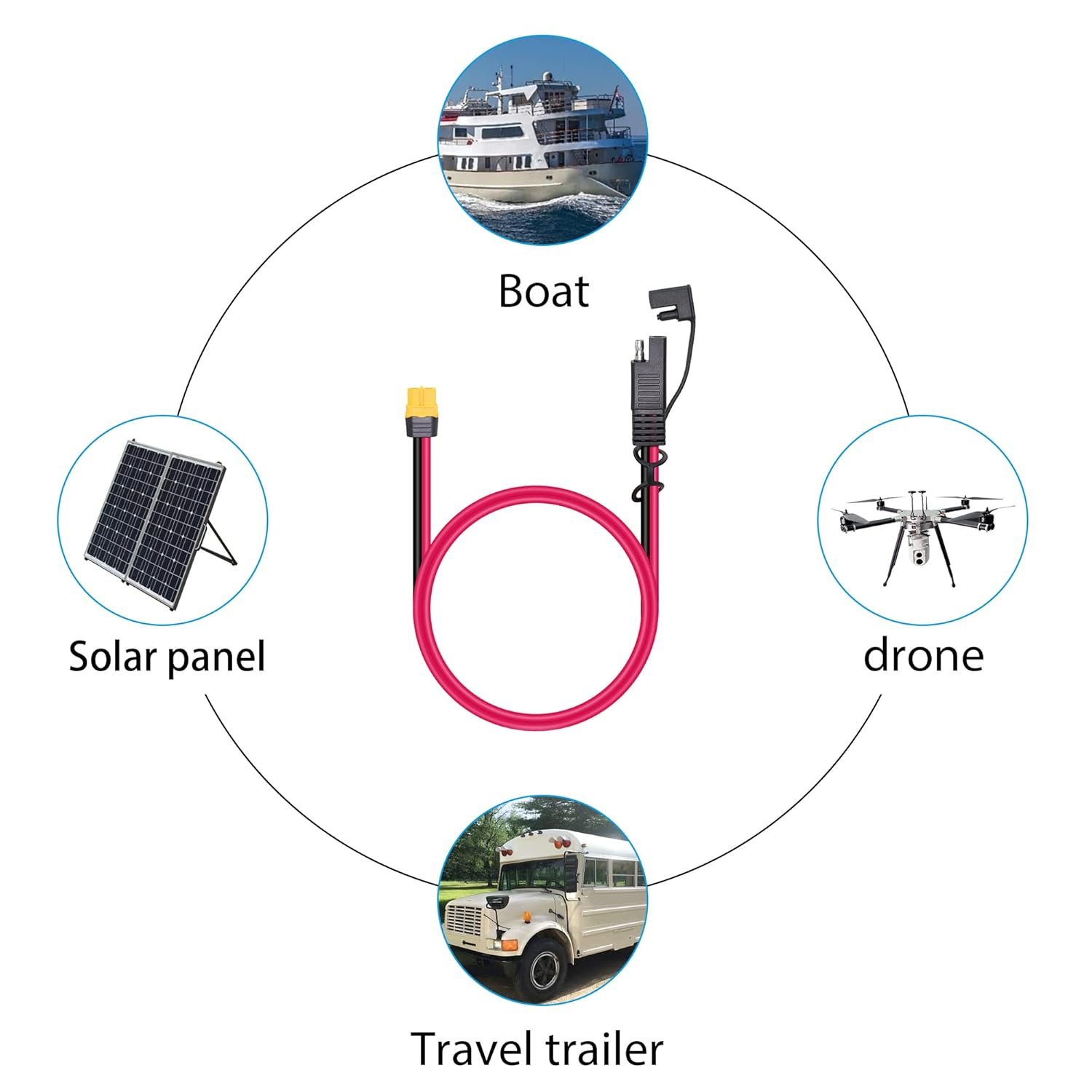 Widely Compatible : SAE to XT60 connector adapter,compatible with various specifications of solar panels,lipo battery ,Portable Power Station & Solar Generator.