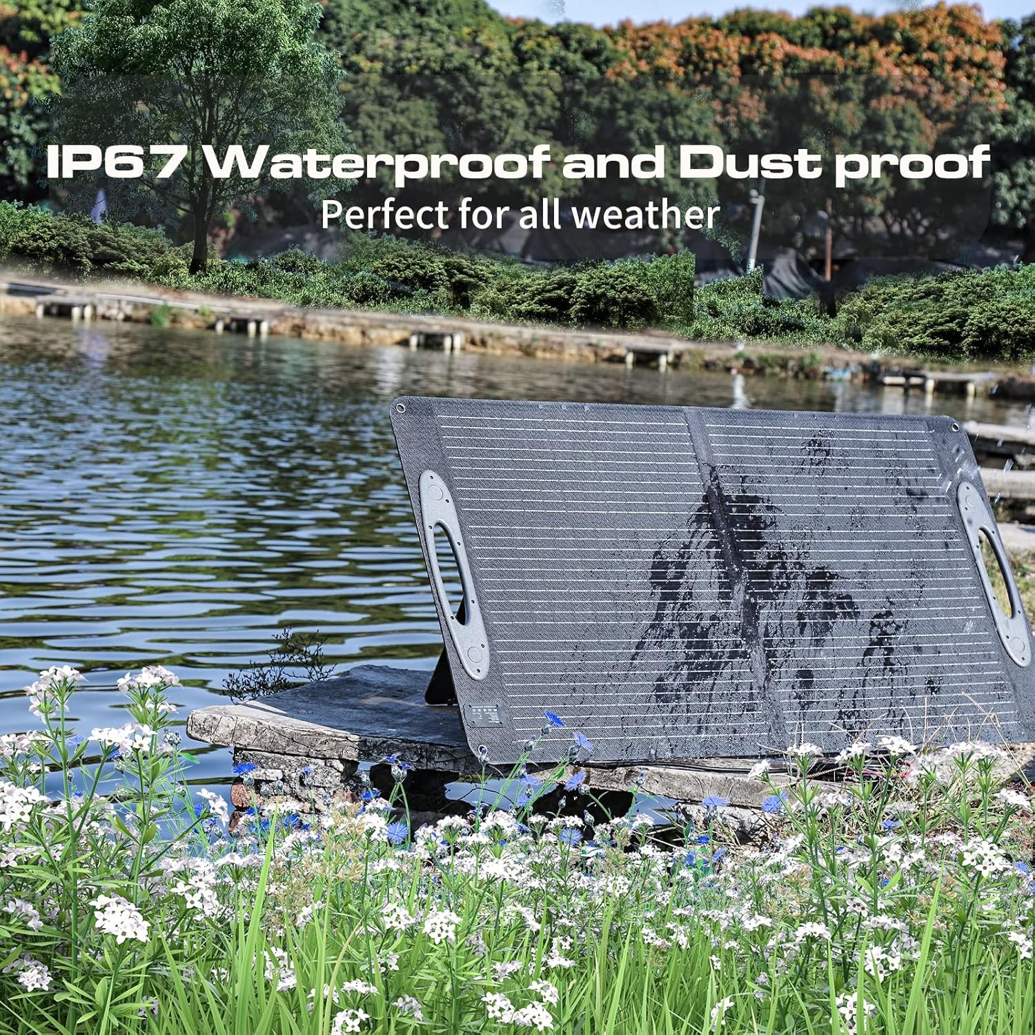 DURABLE & SPLASH-PROOF: The solar panel adopts dense waterproof cloth, through the integrated pressure-bearing technology, it can extend the lifespan of the solar panel. And its water-resistant level reaches IP67, which can effectively prevent water splashing (Do not immerse it in water). More importantly, this solar panel can to be used after local damage.