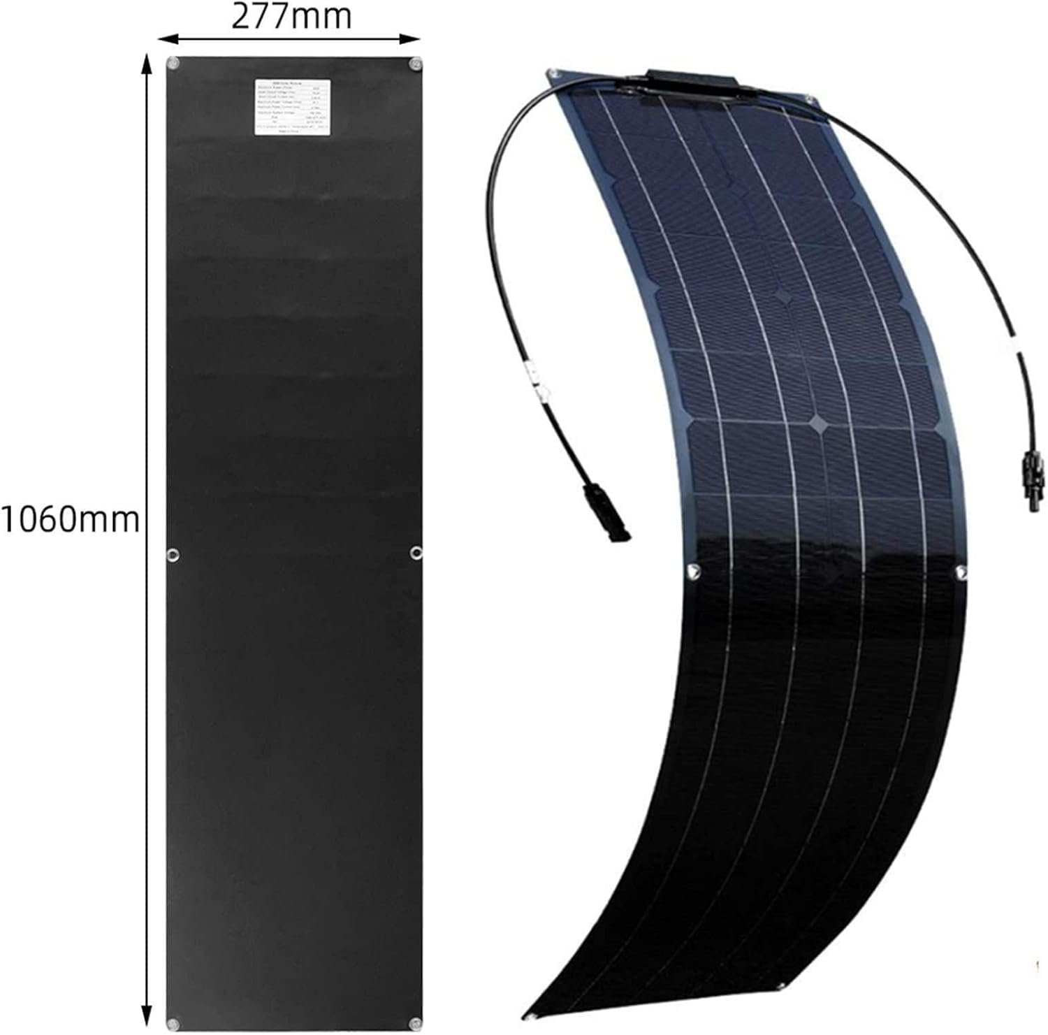 【PORTABLE & WEATHERPROOF DESIGN】Lightweight at 3800g and 1060*277mm compact size, these solar panels are easy to carry and install. The water-resistant multi-layer lamination protects against rain, dust, and UV damage, while the 30° bendable design ensures seamless fitting on curved place like RV roofs or boat decks