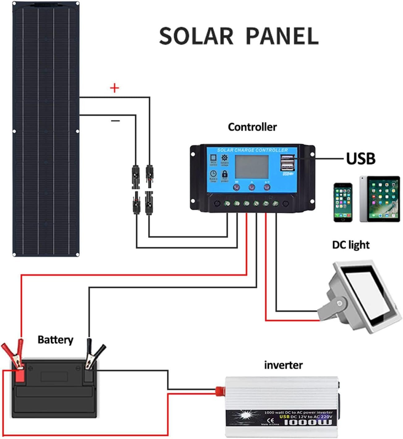 Compatibility: Works with 12V/24V batteries, inverters, and most solar generators