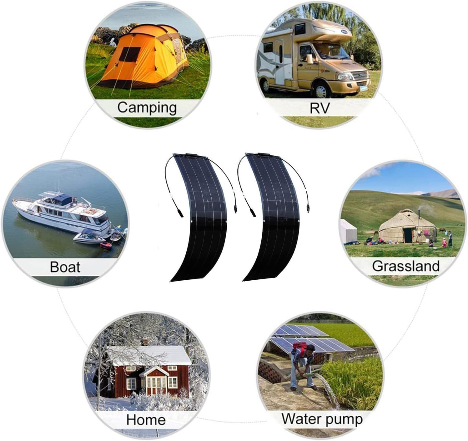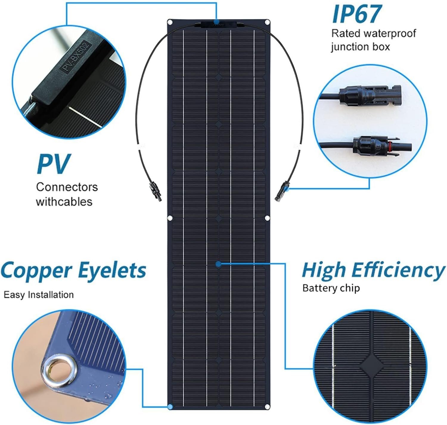 【ALL-WEATHER DURABILITY】Built to withstand extreme temperatures (-20°F to 185°F), heavy snow loads (5400Pa), and 130mph winds, these panels adapt to harsh environments. The 6 pre-drilled mounting holes allow secure installation on any place(metal, wood, fiberglass), ensuring stability during travel or storms