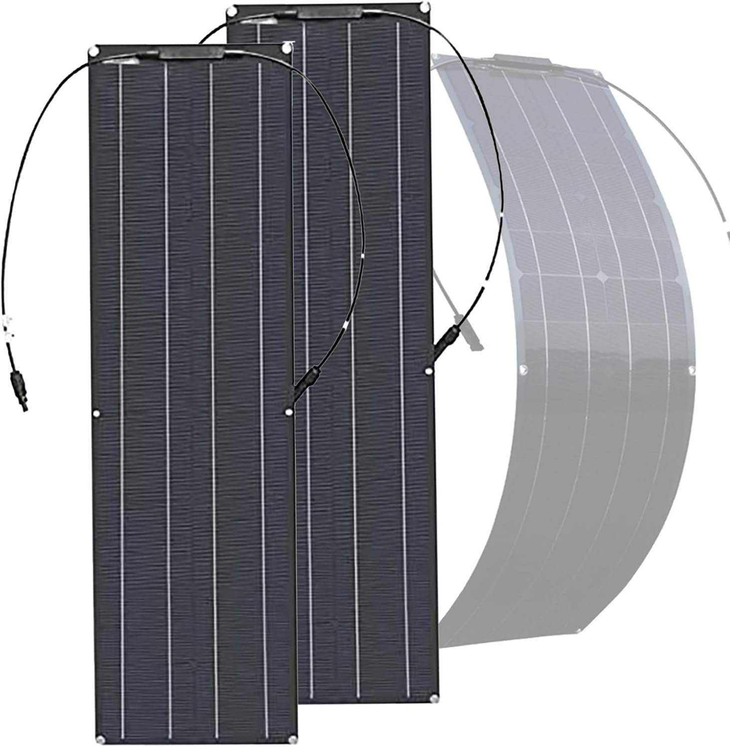 VNATWGOO Solar Panels 200W x2 Photovoltaic Board Bundle, Flexible RV Solar Generator with 30° Bend Tech, Off-Grid Charging Ready 6-Hole Mounting,Black