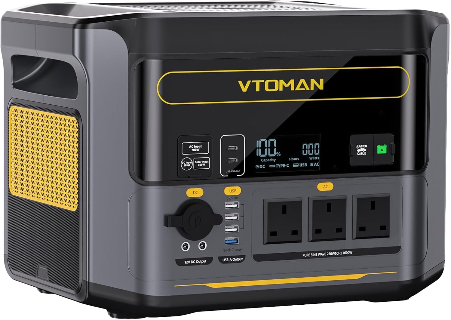 VTOMAN 1000W Portable Power Station with Expandable Capacity 2376Wh, 1H Fast Charging(0-80%), 828Wh LiFePO4 Battery Solar Generator, 2000W Peak 230V UK AC Output for Home Backup, Camping,Power Outages
